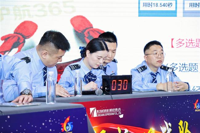 活動前夕,公司成立了第二屆“護(hù)航365”籌備組,主動對接省公安廳交管局和各屬地交警支隊(duì)黨委,就活動主題、活動方案進(jìn)行充分溝通討論,共同選拔支部書記聯(lián)合組隊(duì)。立足主題教育實(shí)際,建立“目標(biāo)一致、學(xué)習(xí)一體、共創(chuàng)一流”的聯(lián)學(xué)機(jī)制,參賽隊(duì)伍以“讀”為根本、以“訓(xùn)”促提高、以“測”看成效,根據(jù)活動方案積極備賽、集中培訓(xùn)、多輪預(yù)演,共同學(xué)習(xí)、共同檢視、共同提升。來自杭州北管理中心的參賽選手洪秋亞子談起備戰(zhàn)過程,“我們成立了打擂小組,每天都在線上進(jìn)行刷題訓(xùn)練,每周開展組內(nèi)競賽,既是出題人又是答題人,每個(gè)人鉚足了勁。”