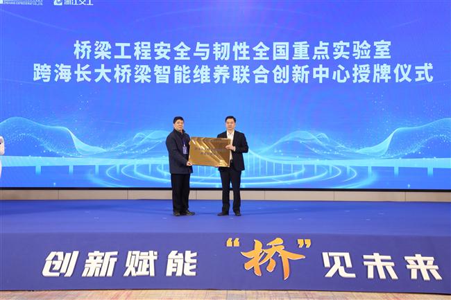 杜修力院士為“橋梁工程安全與韌性全國重點實驗室跨海長大橋梁智能維養(yǎng)聯(lián)合創(chuàng)新中心”授牌。該平臺將重點開展橋梁結(jié)構(gòu)安全及韌性提升關(guān)鍵核心技術(shù)與應(yīng)用研究,推進重大科研項目落地、促進科研成果轉(zhuǎn)化,同時培養(yǎng)一支聚焦行業(yè)前沿、學(xué)術(shù)領(lǐng)軍的人才隊伍,探索橋梁管養(yǎng)的新思路、新趨勢、新未來,為全國同類型長大橋輸出管養(yǎng)經(jīng)驗。