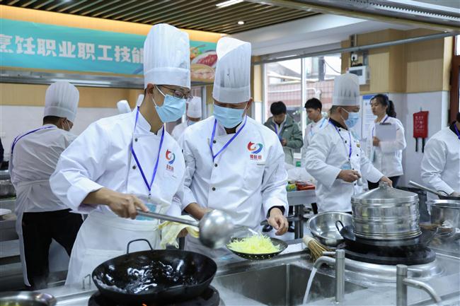 韓靜華宣布烹飪職業(yè)技能競賽正式開始。據(jù)悉,本次競賽共有來自6個管理中心的50余名選手參加,分為中式烹調(diào)師專業(yè)組、業(yè)余組和廚王爭霸個人賽三個組別,參賽選手需在規(guī)定時間內(nèi)完成指定菜品。比賽現(xiàn)場香氣四溢,選手們各自拿出“看家本領(lǐng)”,展現(xiàn)了專業(yè)的刀工與技法,各色食材經(jīng)大廚們的巧手后制作成造型獨特、口味鮮美的精品佳肴,令觀眾們大飽眼福。