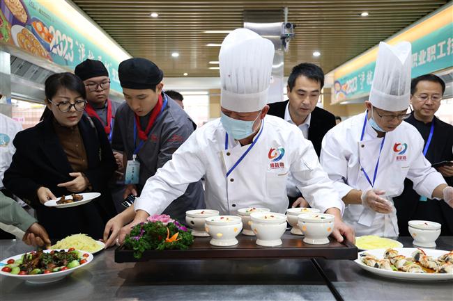 本次競賽還專門設(shè)置了大師授課環(huán)節(jié),邀請了中國烹飪大師、餐飲業(yè)國家一級評委胡國軍為參賽選手講解并演示了冷拼刀工技法,選手們還實地參觀了產(chǎn)融教學(xué)示范點——寧波狀元樓點心大師工作坊,拓展了眼界,增強了團(tuán)隊的職業(yè)技能素養(yǎng)。