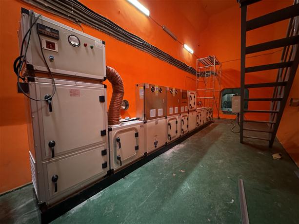 只見在西堠門大橋主塔塔頂,工作人員將模塊化的除濕設(shè)備一個(gè)個(gè)組裝起來(lái),放在塔頂上橫梁位置。之后,開啟除濕機(jī),干燥空氣從主塔塔頂?shù)目諝庵苽湔局休敵?,?jīng)由送氣管道到達(dá)全橋所有主纜內(nèi)部,最后在排氣夾排出,保障主纜鋼絲不發(fā)生腐蝕現(xiàn)象?!斑@次在主塔兩側(cè)一共安裝4組除濕機(jī),每一側(cè)安裝兩組,一組主設(shè)備一組備用設(shè)備,確保除濕功能的持續(xù)性?!敝凵焦芾碇行捻?xiàng)目負(fù)責(zé)人說(shuō)。傳統(tǒng)除濕機(jī)組只有一臺(tái)主設(shè)備,為保障除濕功能的連續(xù)性,滿足長(zhǎng)時(shí)間除濕的需求,橋梁養(yǎng)護(hù)工作人員設(shè)計(jì)了一主一備并聯(lián)型除濕機(jī)組。日常以傳統(tǒng)除濕機(jī)組即主除濕機(jī)組工作為主,高溫高濕環(huán)境下,視情況啟用備用機(jī)組,或同時(shí)開啟主、備用機(jī)組,提升除濕效率。此外,該備用除濕機(jī)組是橋梁養(yǎng)護(hù)工作人員自主研發(fā)的濃縮除濕機(jī),采用“濃縮冷卻串聯(lián)”創(chuàng)新式除濕設(shè)計(jì),屬國(guó)內(nèi)首創(chuàng),具備恒定除濕能力,基本不受季節(jié)等外界環(huán)境因素影響,確保在復(fù)雜的海洋氣候環(huán)境下,為主纜除濕工作提供更強(qiáng)力更有效的保障。