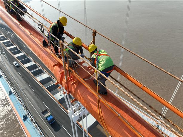接下來(lái),除濕系統(tǒng)將進(jìn)入試運(yùn)行階段,預(yù)計(jì)3個(gè)月除掉主纜內(nèi)部水分,之后進(jìn)入保持期?!拔覀儤蛄吼B(yǎng)護(hù)人員將繼續(xù)做好除濕情況監(jiān)測(cè)工作,實(shí)時(shí)掌握除濕系統(tǒng)運(yùn)行情況,有效保證橋梁結(jié)構(gòu)強(qiáng)度、提升橋梁安全性、延長(zhǎng)橋梁使用年限?!敝凵焦芾碇行酿B(yǎng)護(hù)管理處相關(guān)負(fù)責(zé)人說(shuō)。