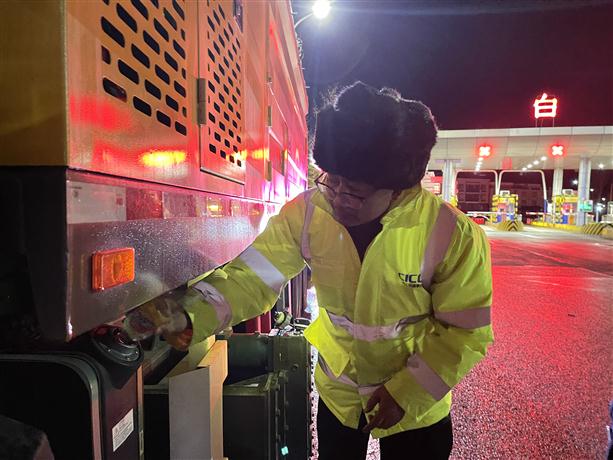 12月15日中午時(shí)分,杭州北管理中心52歲的老黨員吳恒飛接到抗冰雪備勤任務(wù)。他隨即戴上外勤作業(yè)專業(yè)安全頭盔,快步向巡查車跑去。吳恒飛是杭州北管理中心的一名施救巡查管理員,擁有18年保暢經(jīng)驗(yàn)的他負(fù)責(zé)值守杭徽高速白果至昱嶺關(guān)路段,該路段也是杭徽高速每年抗冰雪任務(wù)最為艱巨的路段。